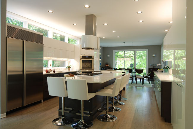 Is There Room For Both? Just as kitchen designs can accommodate a mix of finishes and colors, they can also accommodate a mix of handled and handle-less cabinet doors. In this Northbrook Contemporary Kitchen Renovation, the owners installed handles on the majority of the cabinets, but left some of the uppers "handle-free" for a nice balance.